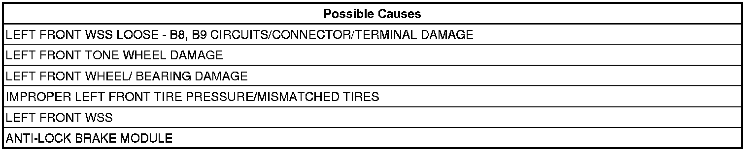 When the Left Front Wheel Speed Sensor (WSS) Signal is intermittently missing while vehicle speed is above 25 mph (40 km/h) or erratic wheel speed signal during acceleration or sensed wheel speed is different from other wheels.