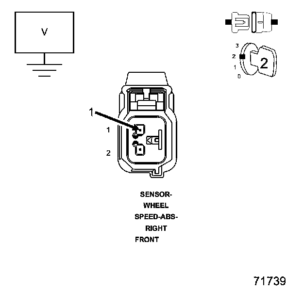 2. Measure the voltage between the (B6) Right Front WSS Signal circuit and ground.