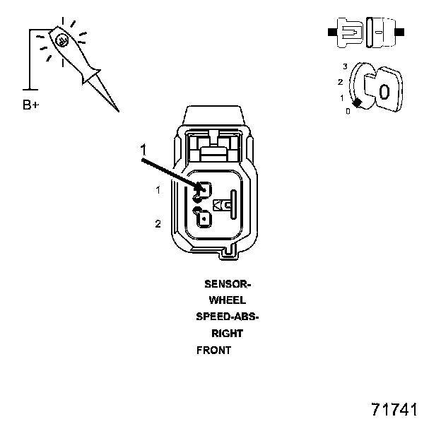 2. Using a 12-volt test light connected to 12-volts, probe the (B6) Right Front WSS Signal circuit.