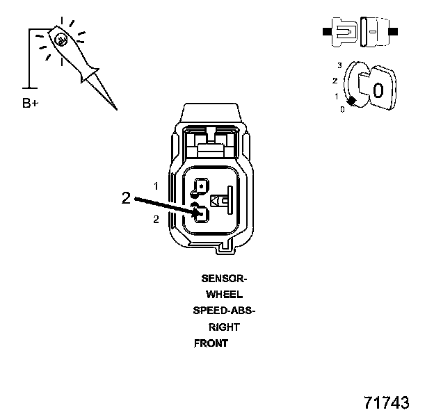 2. Using a 12-volt test light connected to 12-volts, probe the (B7) Right Front WSS Supply circuit.