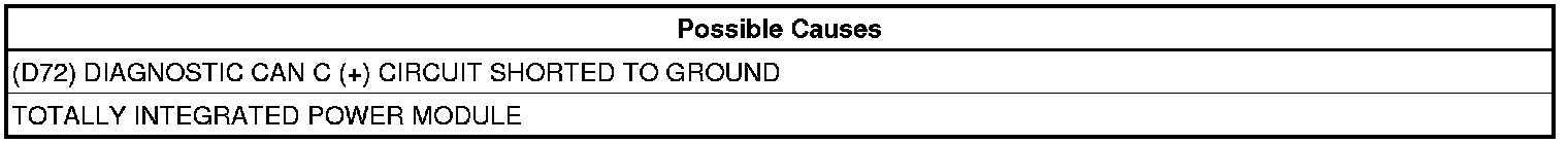 - Repair the (D72) Diagnostic CAN C (+) circuit for a short to ground.