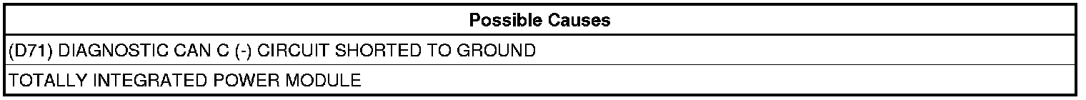 - Repair the (D71) Diagnostic CAN C (-) circuit for a short to ground.