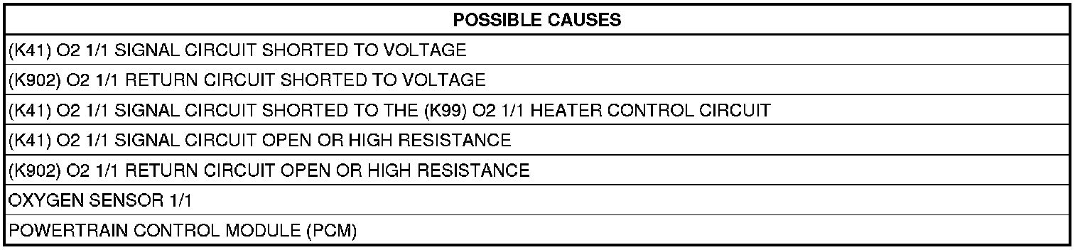 - Repair the (K41) O2 Sensor 1/1 Signal circuit for a short to voltage.