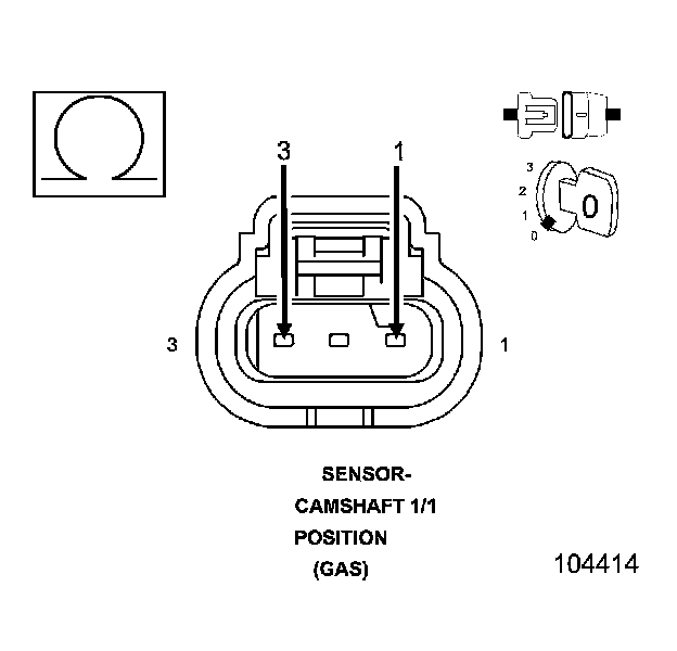 4. Inspect the Camshaft 1/1 Position Sensor for conditions such as loose mounting screws, damage, or cracks.