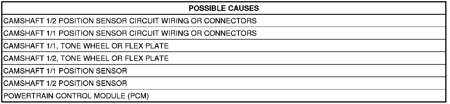 3. CAMSHAFT 1/2 POSITION SENSOR IRREGULAR SIGNAL