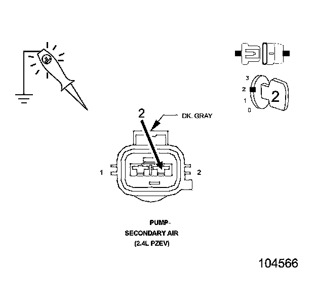 3. Using a 12-volt test light connected to ground, check the Secondary Air Pump Relay Output circuit in the C2 Secondary Air Pump Assembly harness connector.
