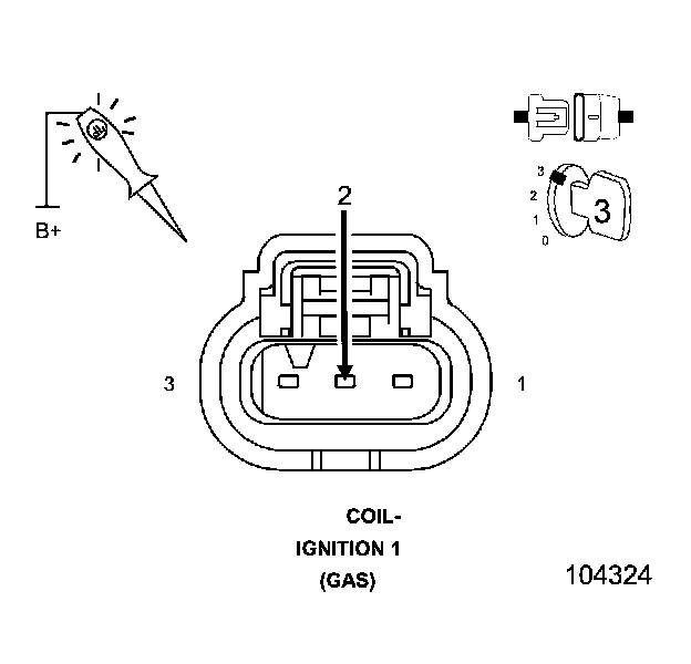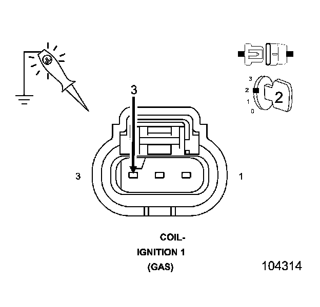 2. Using a 12-volt test light connected to 12 volts, check the (K19) Coil 1 Control circuit in the Ignition Coil 1 harness connector.