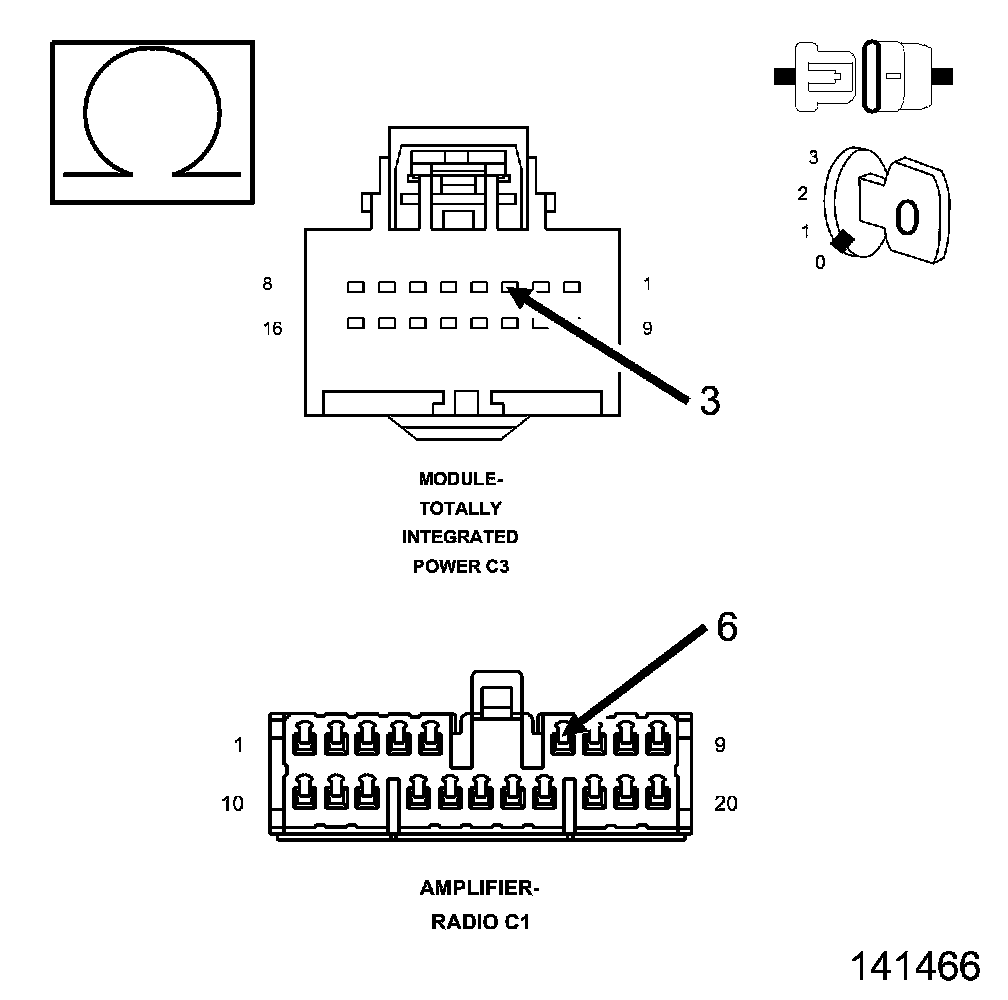 1. Measure the resistance of the (D54) CAN B BUS (-) circuit between the Totally Integrated Power Module C3 harness connector and the Amplifier C1 harness connector.