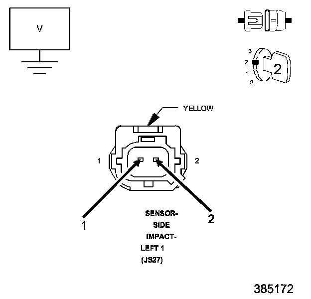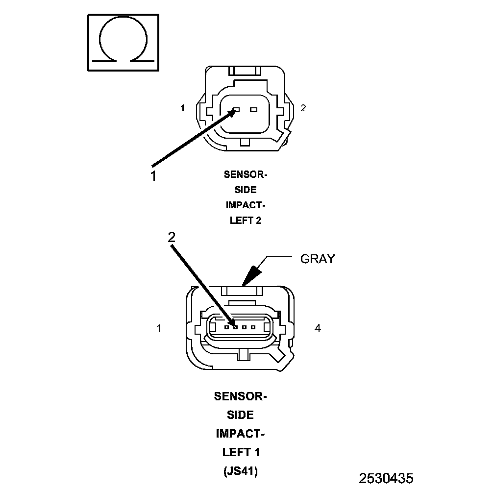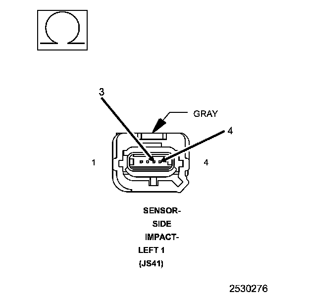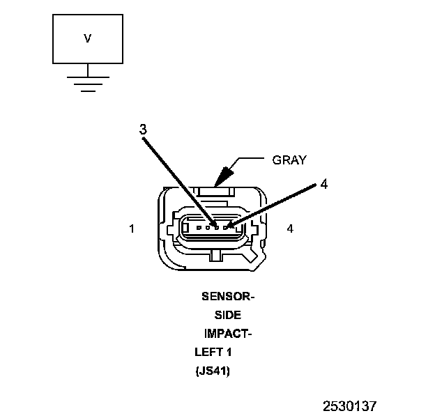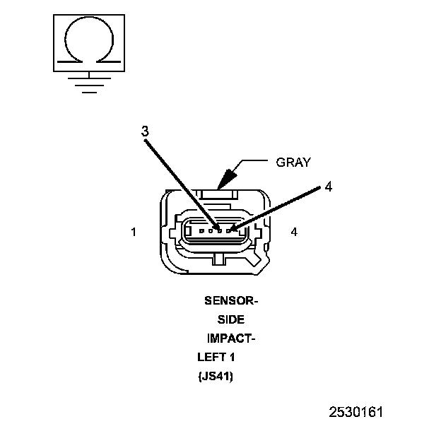 1. Measure the resistance between ground and the (R17) Left Side Impact Sensor 2 Signal circuit at the Left Side Impact Sensor 2 harness connector.