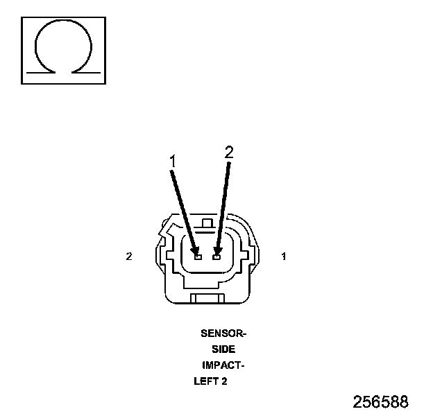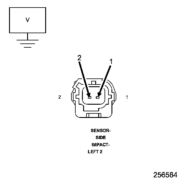 1. Measure the resistance between ground and the (R17) Left Side Impact Sensor 2 Signal circuit at the Left Side Impact Sensor 2 harness connector.