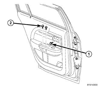 3. Install the three screws to handle, one under the handle and two hidden beneath a trim panel inside handle (2).