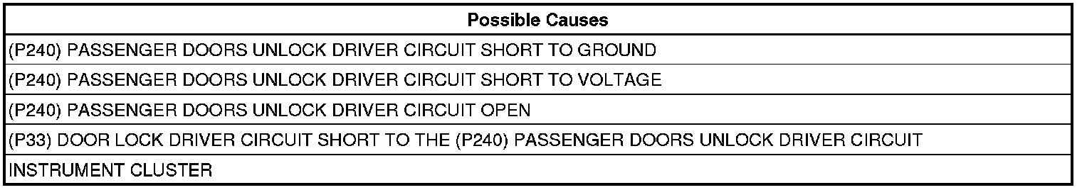 2. (P240) PASSENGER DOORS UNLOCK DRIVER CIRCUIT SHORTED TO BATTERY