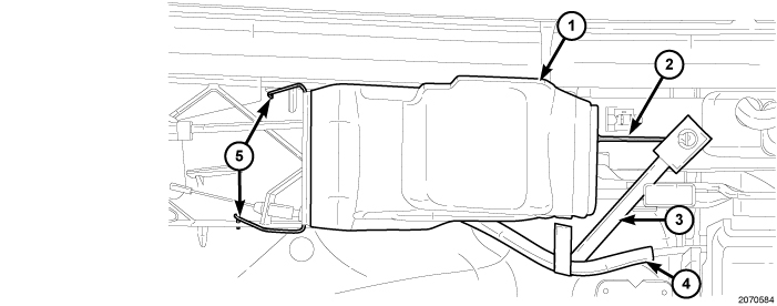 3. Route the strap (3) as shown and secure it with the rear retainer (2) to the side rail.