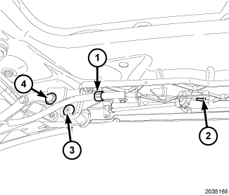 13. Install both clips (4) to the panel to panel cylinder.