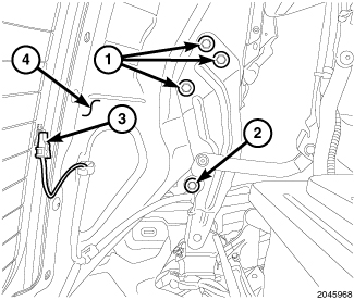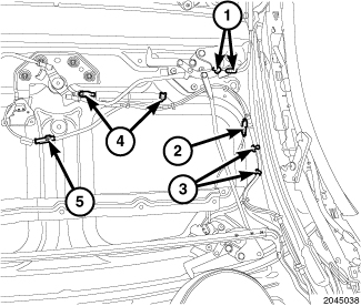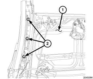 2. Install the bolts (1) to the primary hinge. Tighten to 23 N-m (17 ft. lbs.).