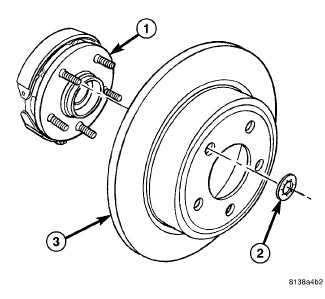 15. Remove the wheel mounting nuts and finish installing the brake rotor (3) as well as all components removed to access it. Brake Rotor - Installation