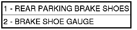 9. Place Gauge (2) over the parking brake shoes (1) at their widest point.