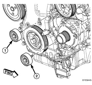 20. Install accessory drive belt lower idler pulley (2). Tighten bolt to 48 Nm (35 ft. lbs.).