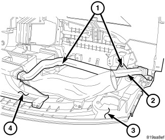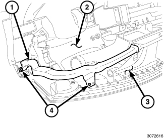 2. Install the two screws (4) that secure the passenger side demister duct (2) to the instrument panel top cover (3). Tighten the screws to 2.2 Nm (20 in. lbs.).