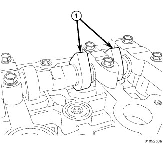 3. Rotate camshaft so lobes are vertical (1).
