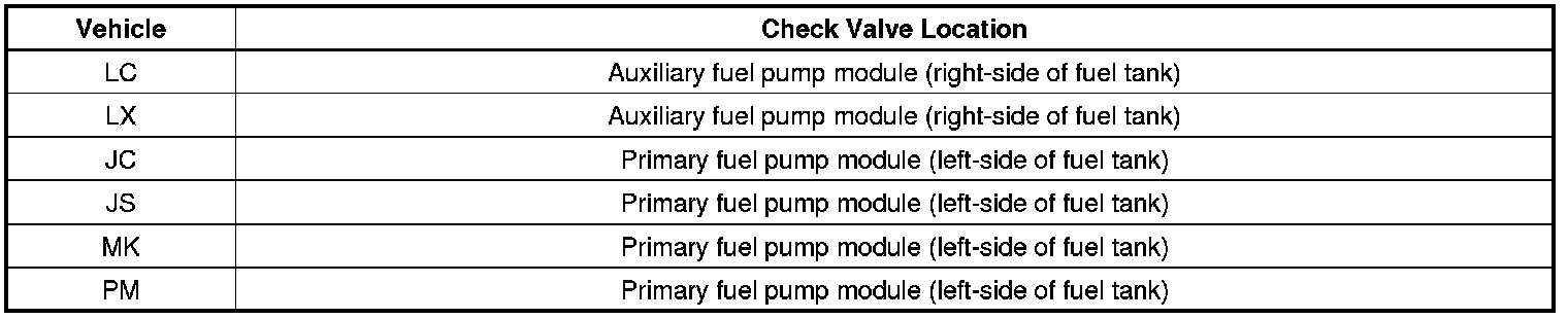 - Replace the appropriate fuel pump module as indicated in the table below.
