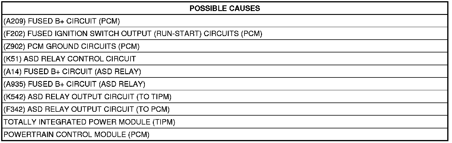 - Repair the (K542) ASD Relay Output circuit between the TIPM and the ASD Relay. Inspect the related fuses.