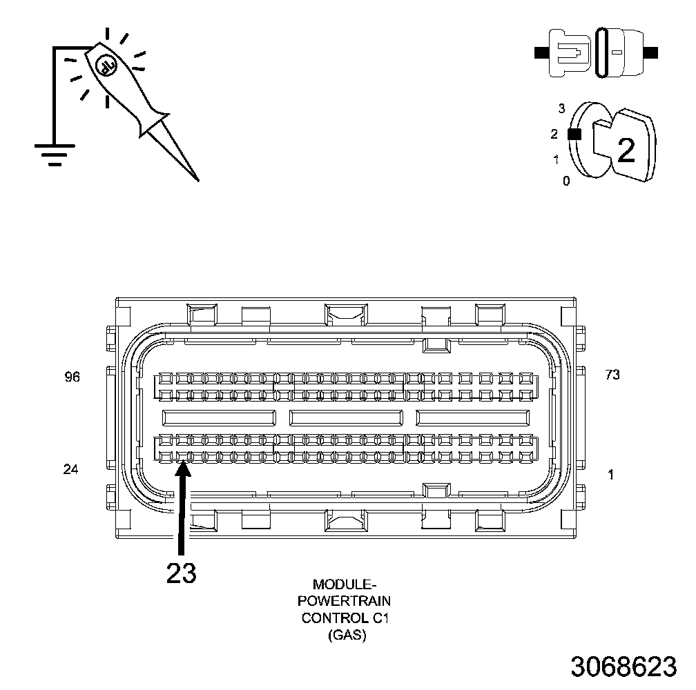 2. Using a 12-Volt test light connected to battery voltage, probe all of the (Z902) PCM ground circuits.