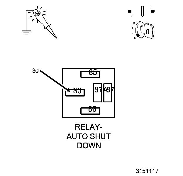 1. Using a 12-Volt test light connected to ground, probe the (A935) Fused B+ circuit at the ASD/Main Relay terminal.