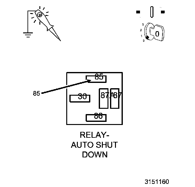 3. Using a 12-Volt test light connected to ground, probe the (A14) Fused B+ circuit at the ASD Relay terminal.