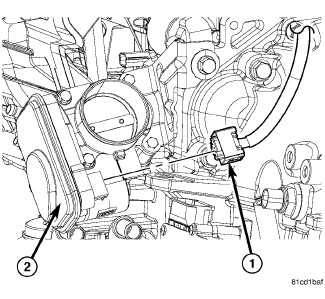 8. Connect the electrical connector (1) to the throttle body (2).