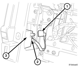 5. Connect remote start antenna coaxial cable connector (1) to SKREEM module (3).