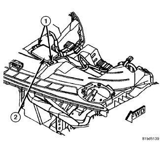 1. Install the remote start antenna (2) and screws (1) to instrument panel assembly. Tighten to 2.5 Nm (22 in. lbs.).