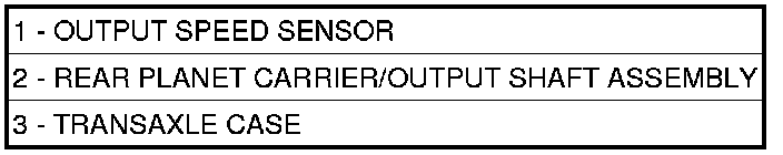 The Output Speed Sensor (1) provides information on how fast the output shaft is rotating. As the rear planetary carrier park pawl lugs pass by the sensor coil, an AC voltage is generated and sent to the PCM/TCM. The PCM/TCM interprets this information as output shaft rpm.