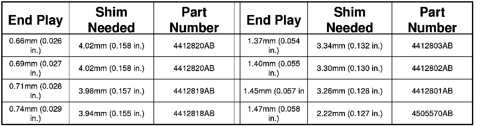i. Remove the gauging shim and install the proper shim indicated by the chart.
