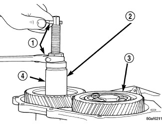36. Install the transfer shaft gear (4) using Installer (6261) (2).