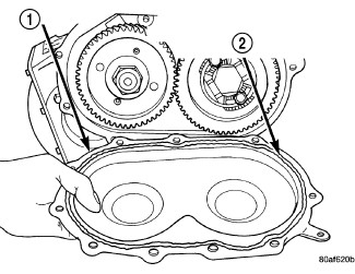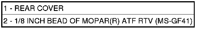 40. Install a bead of Mopar(R) ATF RTV (MS-GF41) (2) to transfer gear cover.