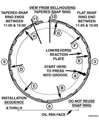 43. Install low/reverse reaction plate flat snap ring (2).