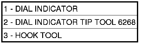 54. Set up Dial Indicator (1), Indicator tip (6268) (3) and Hook tool (2), measure 2/4 clutch clearance. Press down on clutch pack with finger and zero dial indicator. 2/4 clutch pack clearance is 0.76-2.64 mm (0.030-0.104 in.). Set up indicator and record measurement in four places. Take average of readings. If clearance is outside this range, the clutch is assembled improperly. There is no adjustment for 2/4 clutch clearance.