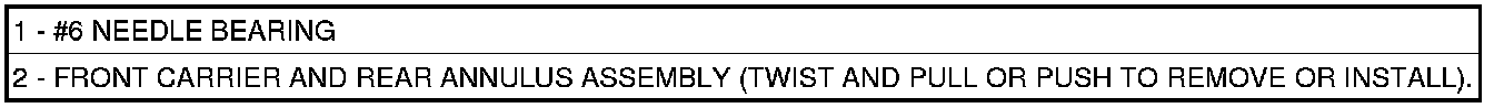 56. Install front carrier/rear annulus assembly (2) and #6 needle bearing (1).