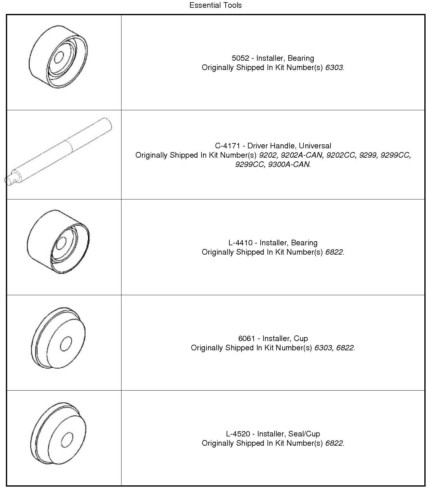 10. Using Installer (5052) (2) and Handle (C-4171) (1), install differential bearing to differential (ring gear side).