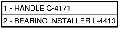 11. Using Bearing Installer (L-4410) (2) and Handle (C-4171) (1), install differential bearing to differential (ring gear side).