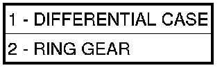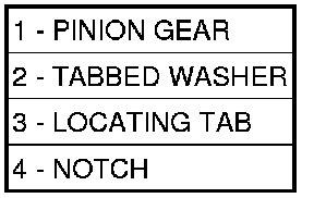 3. Install both pinion gears (1) and washers (2) to case, while orientating washer tabs to notch in case.