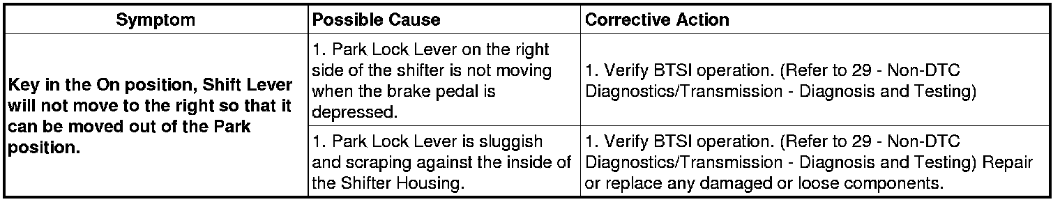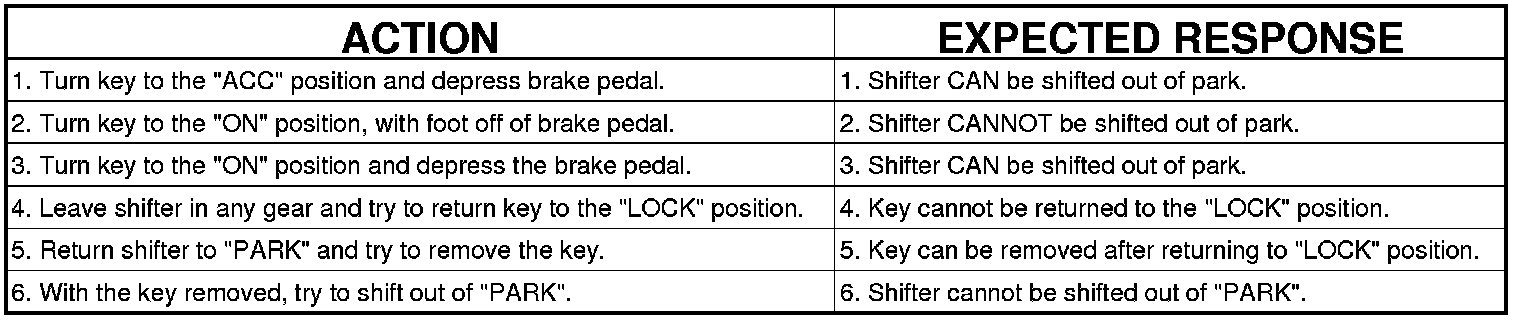 Use the table below to verify the condition of the Shift Interlock System.