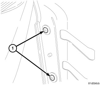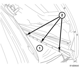 17. Remove plastic clip (1) and pushpins (2) from both sides of opening.
