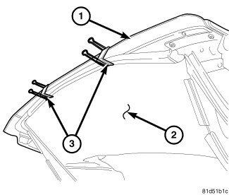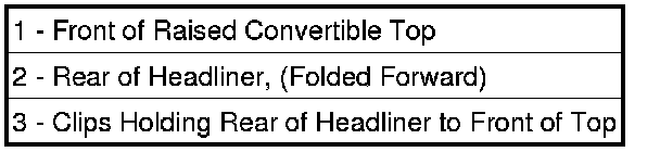 7. Remove the headliner retainer from the rear bow (1) to allow it to fold toward the front of the vehicle.