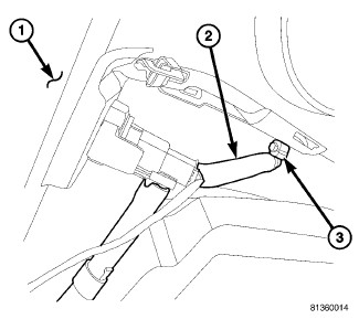 2. Attach washer hose (2) to headlamp washer fitting (3).