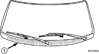 8. In the event the blade tip strikes the cowl screen (1) or molding, remove the arm. Position arm on windshield and tighten nut to 25 Nm (18.5 ft. lbs.).