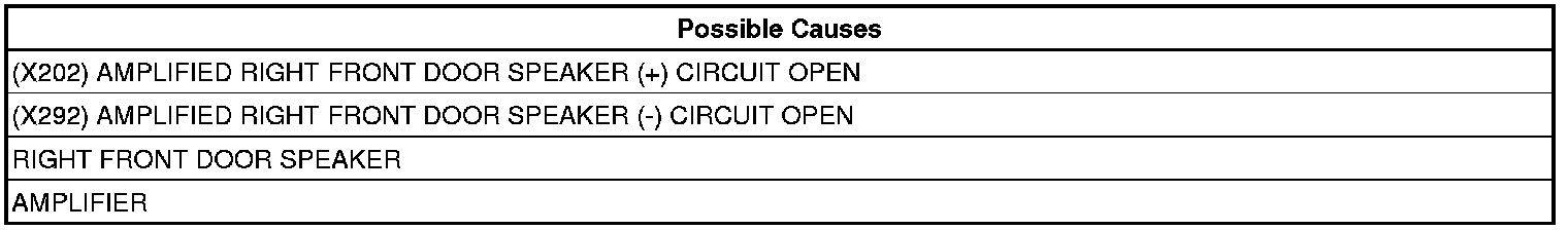 - Repair the (X202) Amplified Right Front Door Speaker (+) circuit for an open.