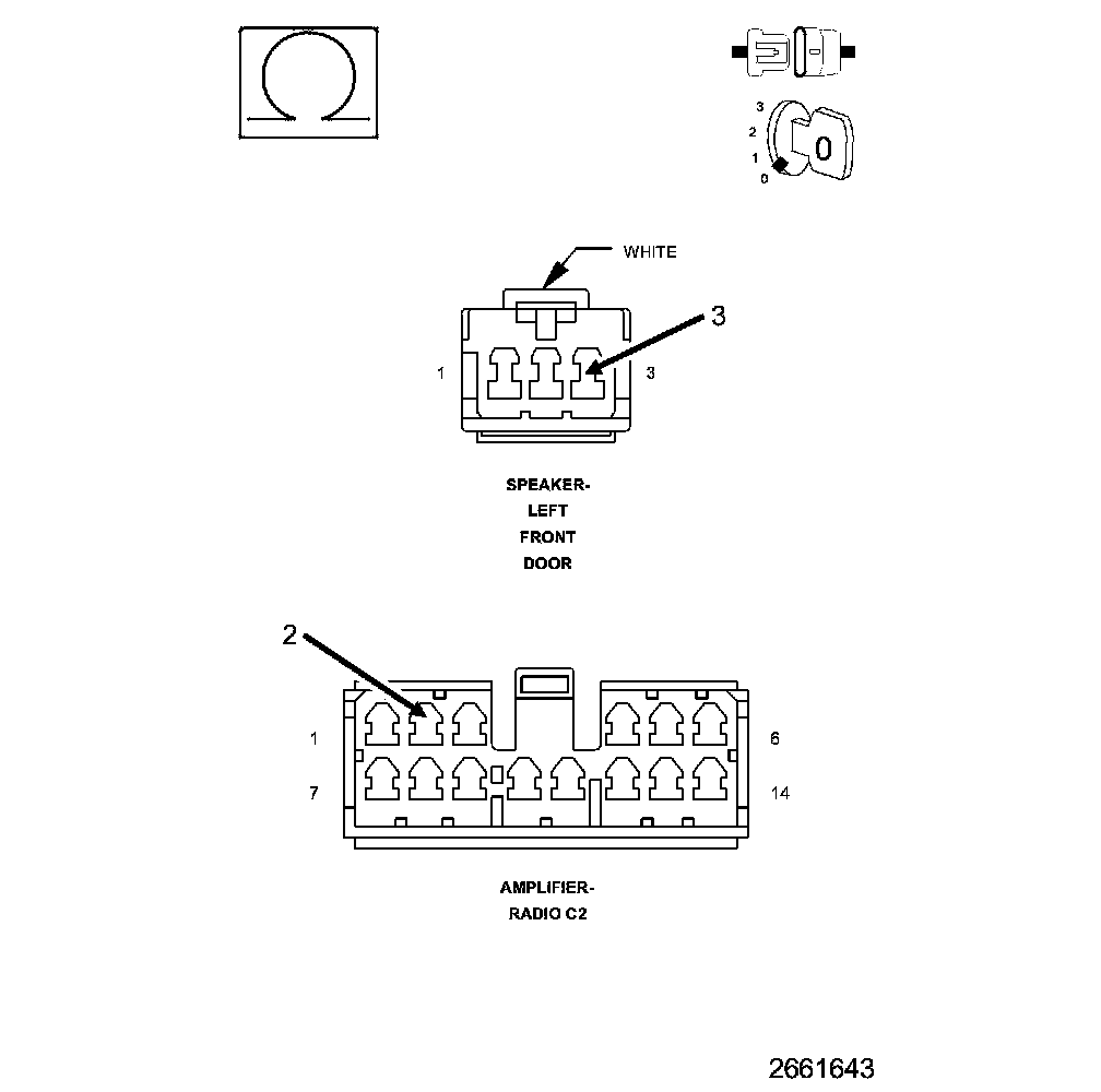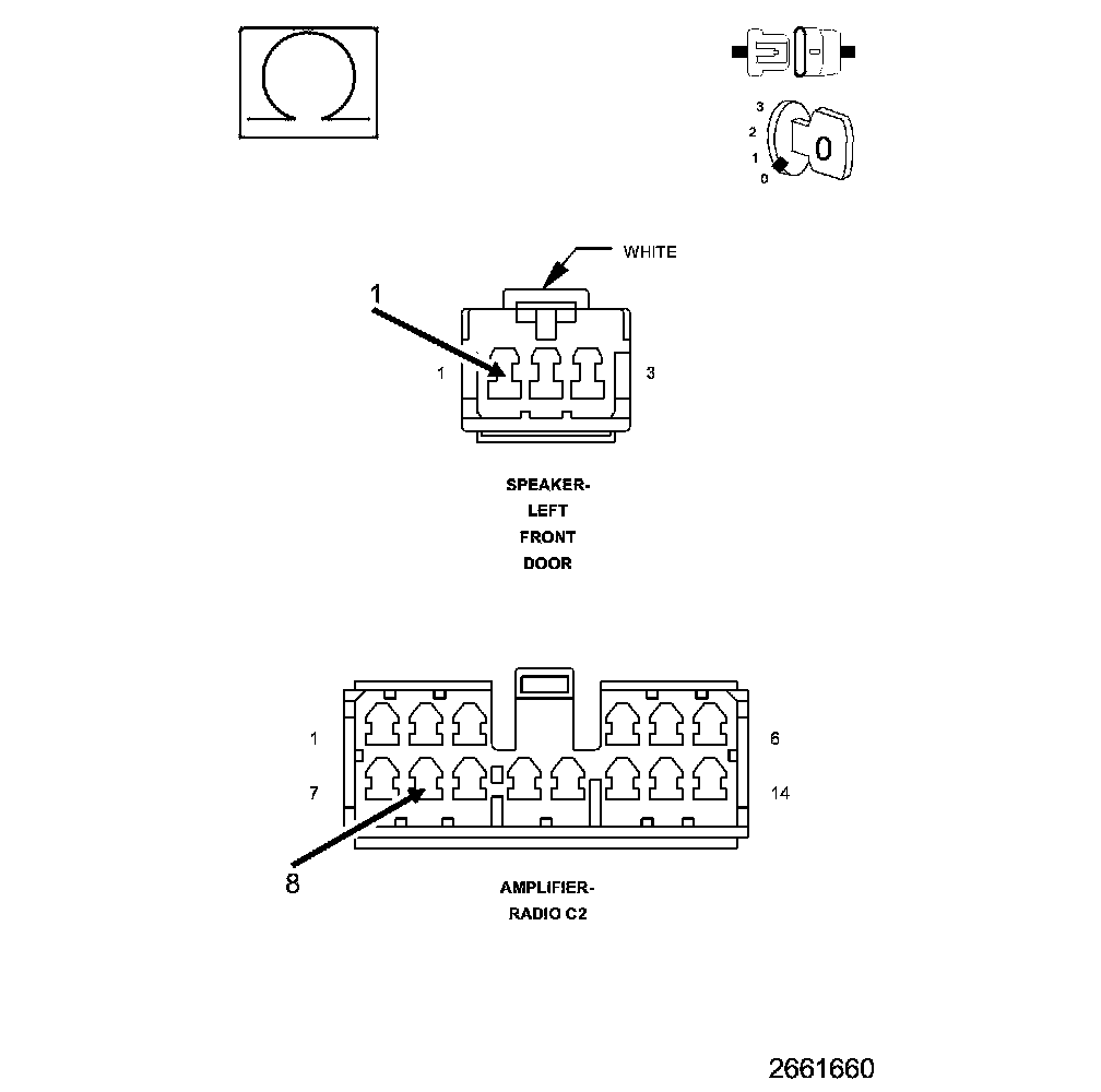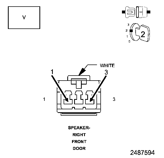 5. With a voltmeter set to read in A/C voltage, measure the voltage of the Amplified Right Front Door Speaker circuits in the Right Front Door Speaker harness connector.