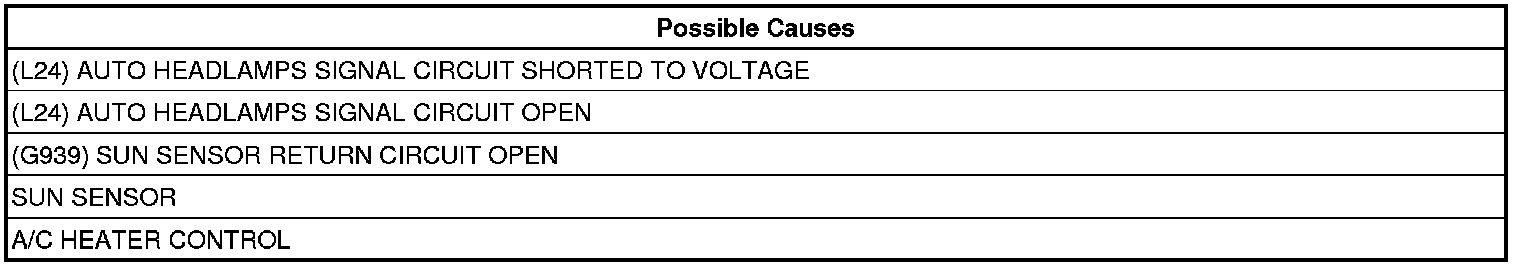 - Repair the (G939) Sun Sensor Return circuit for an open.
